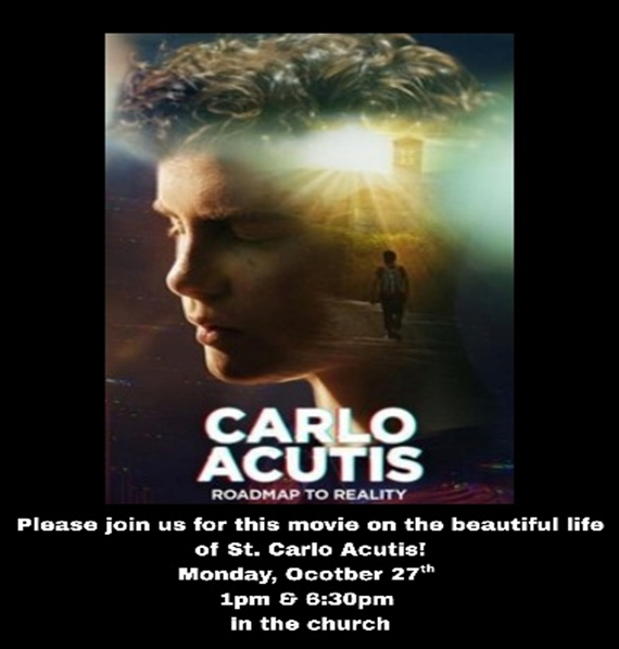 1 p.m. & 6:30 p.m. "CARLO ACUTIS - Roadmap to Reality" Movie in the Church