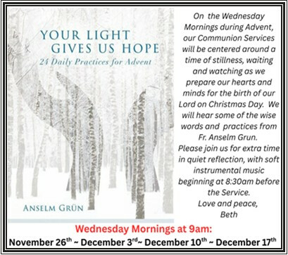 9 a.m. WEDNESDAY MORNING COMMUNION SERVICES DURING ADVENT - November 26 ~ December 3, 10, & 17
