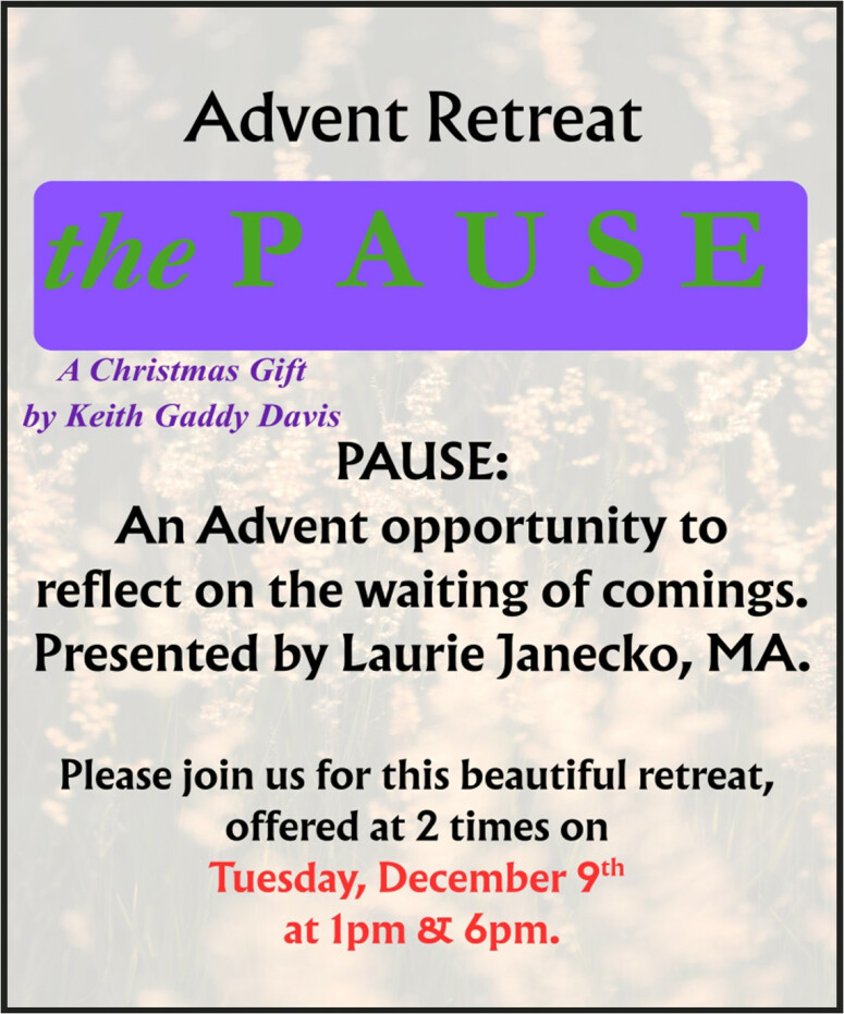 1 p.m. & 6 p.m. Advent Retreat ~ the Pause - A Christmas Gift by Keith Gaddy Davis
