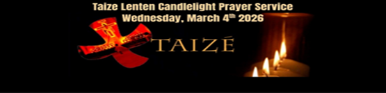Please join us for our Taizé Evening of Prayer on Wednesday, March 4th at 7pm in the church. What is Taizé Prayer? Taizé is a form of Christian prayer originating from the ecumenical Christian Community of Taizé in France. We are invited to rest in God through the singing of psalm verses and other simple chants, alternating with periods of silent reflection in the atmosphere of candlelight. It is a time to “come away and rest for awhile” through the experience of simplicity and depth of the Word of God. It is a beautiful way to quiet our hearts and minds during the Lenten Season. All are warmly welcome.